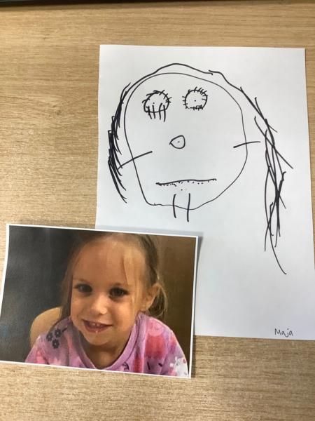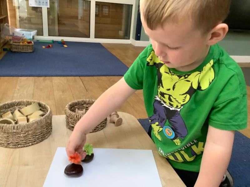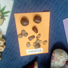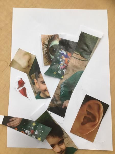 Learning our "Head, Shoulders, Knees and Toes" rhyme was a particular hit, helping us playfully name and identify our body parts. With mirrors in hand, the children created fantastic self-portraits, focusing on capturing lots of detail, and imaginatively crafted transient art faces using a variety of loose parts. We even turned detective, examining our unique hand and fingerprints and discussing how these patterns make each of us distinct, before immortalising them with paint on large paper.
