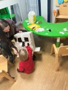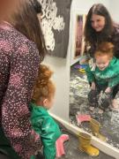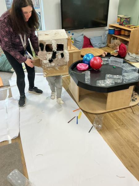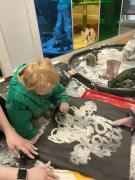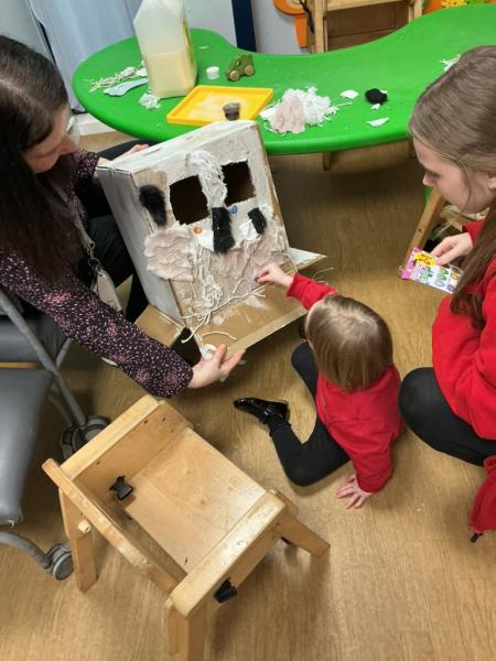 The children enjoyed a sensory version of 'We're going on a bear hunt'; they dressed up in winter hats, scarves and gloves, explored ice, polar bears and shone their torches.