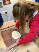 First we thought about our faces and pointed out all of our features. We used oval templates and special knives to cut out the shape for our face and then we rolled little pieces of clay to make our eyes, nose and mouth before using a pencil to make marks for our hair.