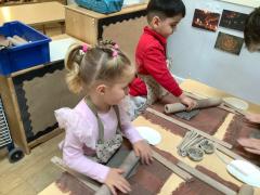 Clay work has many benefits for the children at nursery, including fine motor development; sensory exploration opportunities; fostering creativity and imagination in the children; problem solving skills and developing communication and language skills too.