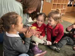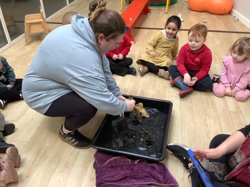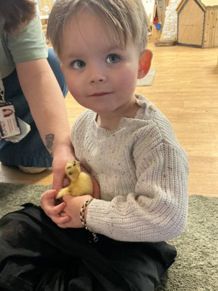 Over the past few weeks, the nursery children have enjoyed a special experience observing duck eggs as they developed and hatched. The children showed great excitement and curiosity as they watched the changes each day, learning about the life cycle and how living things grow. When the ducklings began to hatch, the children were able to see this process firsthand, which sparked lots of discussion, questions, and new vocabulary. They demonstrated care and empathy as they gently observed and talked about how to look after the ducklings. This experience supported their understanding of the natural world, encouraged communication and language development, and provided meaningful opportunities for shared learning and awe.